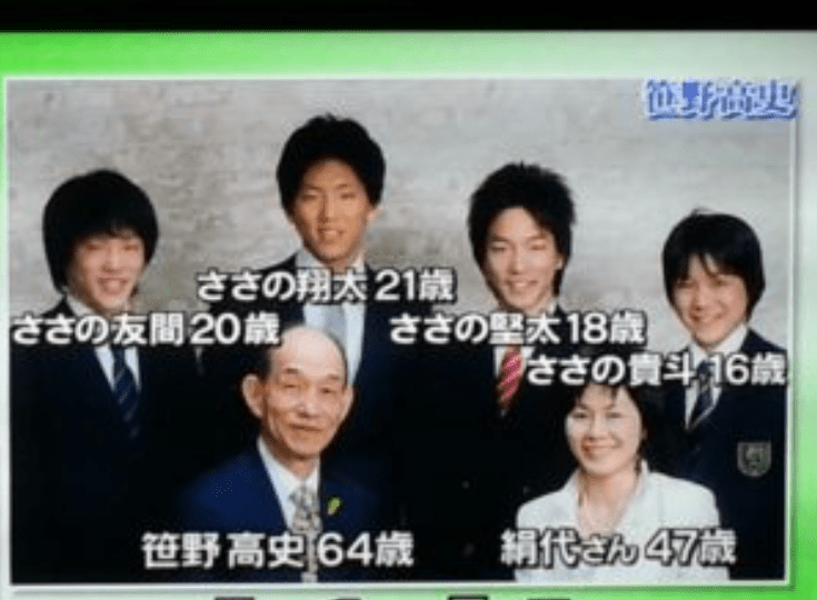 2023年9月、スポーツニッポンの取材記事と、テレビ朝日「徹子の部屋」でのトークによると、三男のささの堅太さんが「数年前」に高校の同級生と結婚していたことが明らかになりました。つまり、堅太さんの嫁は芸能関係者ではなく一般の方であり、若い頃からの知り合いです。