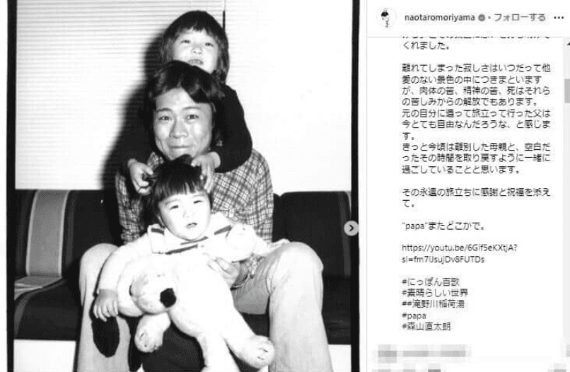 また、ジェームス滝さんと森山良子さんの息子である森山直太朗さんのインスタにも父ジェームス滝さんとの思いでの写真が投稿されていたのでご紹介します。