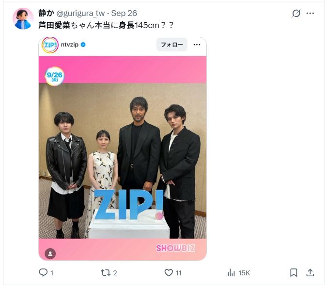 ここでは芦田愛菜さんの身長に関するSNSの反応を集めてみました。