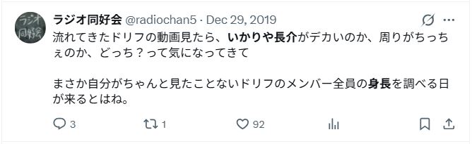 ここではいかりや長介さんの身長に対するSNSの声を紹介します。
