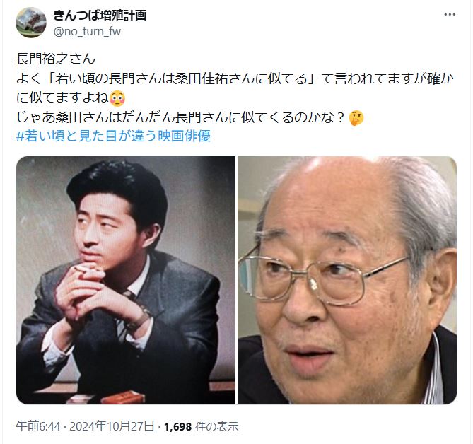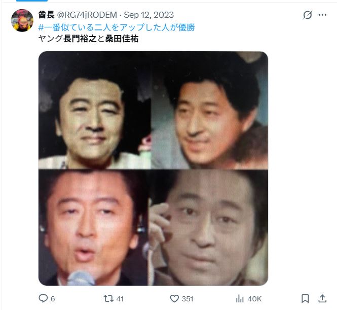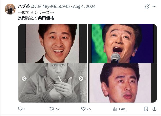 SNS上では「日本の若者の7割が画像を見たら二人が同じ人物だと思う」といった声まで出ていて、ユーザー同士で画像を並べて投稿する動きが頻繁に見られます。たとえば2025年のXでは、画像が拡散されたタイミングで「長門裕之さんの若い頃と桑田佳祐さんはもはや親子」「二人が並んで写っていたら兄弟に見える」といった投稿がバズった経緯もあります。
