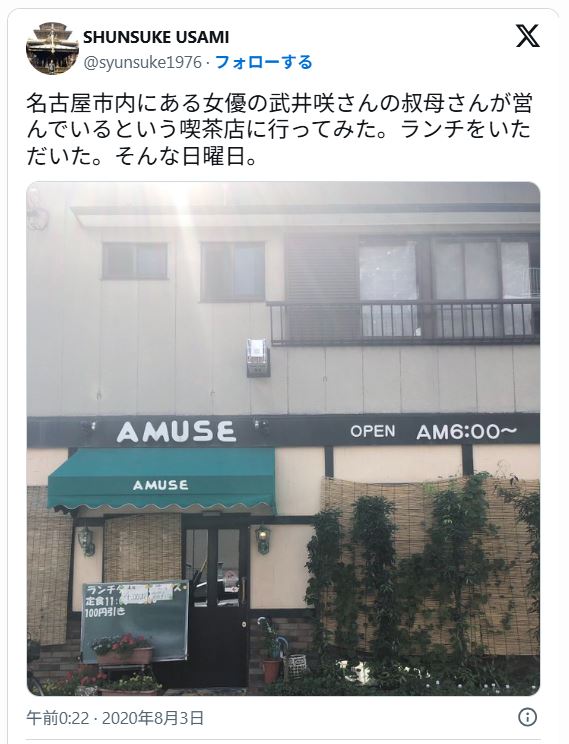 - 実家が喫茶店経営という噂は叔母が経営していることが由来