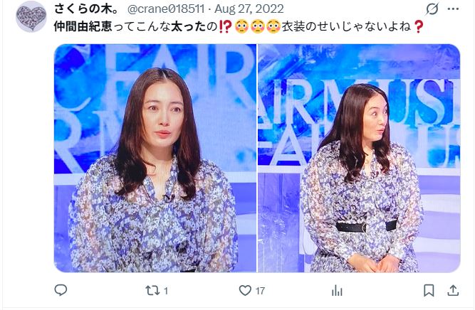 SNSでは「太っておばさん化した?」との声も見られます。