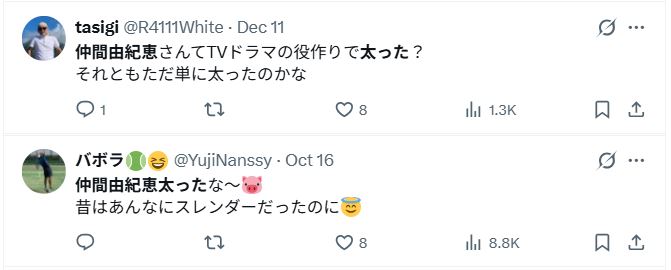 - SNSでは太っても綺麗という肯定的な声も多い