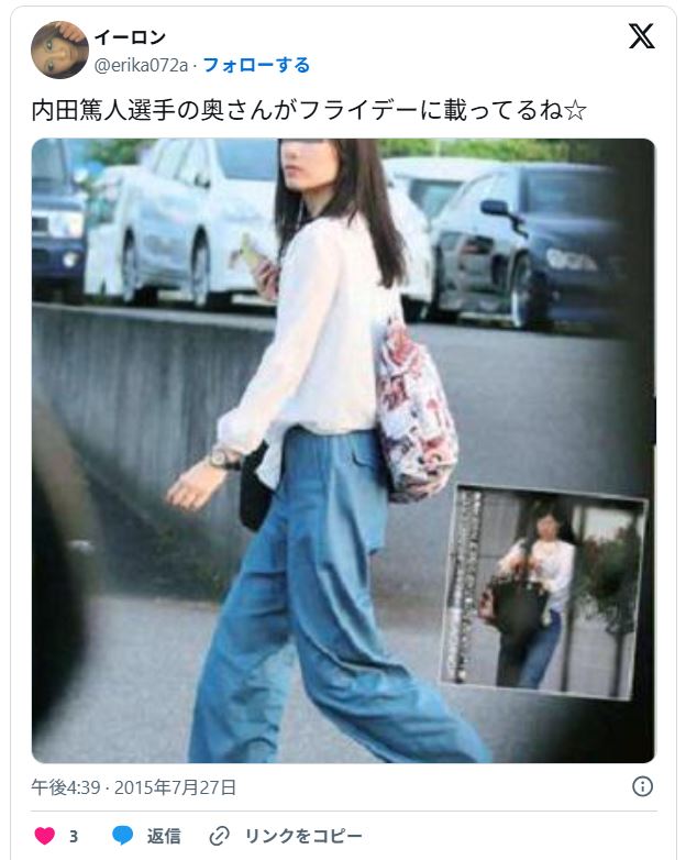結婚直後の2015年、フライデーは「ウッチーの奥さん」として榎田優紀さんの私服姿の写真を掲載し、大きな話題になりました。記事では、内田篤人さんと並んで歩く榎田優紀さんが、まるで女優やモデルのように綺麗だと注目されたようです。このスクープは、芸能ニュースまとめサイトやSNSでも一気に拡散され、「本当に一般人?」と話題が集中。実際に当時の誌面には、オフの日らしいナチュラルなコーディネートで、内田篤人さんとデートを楽しむ様子が映っていたとの情報が見られます。