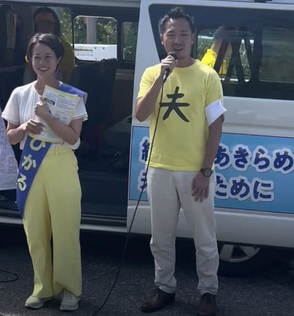 - 夫の藤田智弘さんは藤田ひかるさんの政治活動を支え、集会に同行することもある